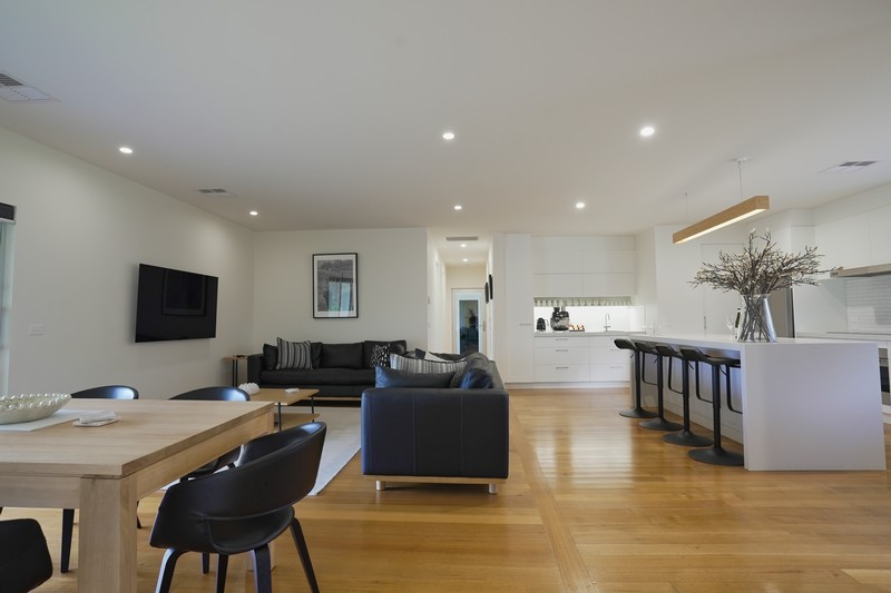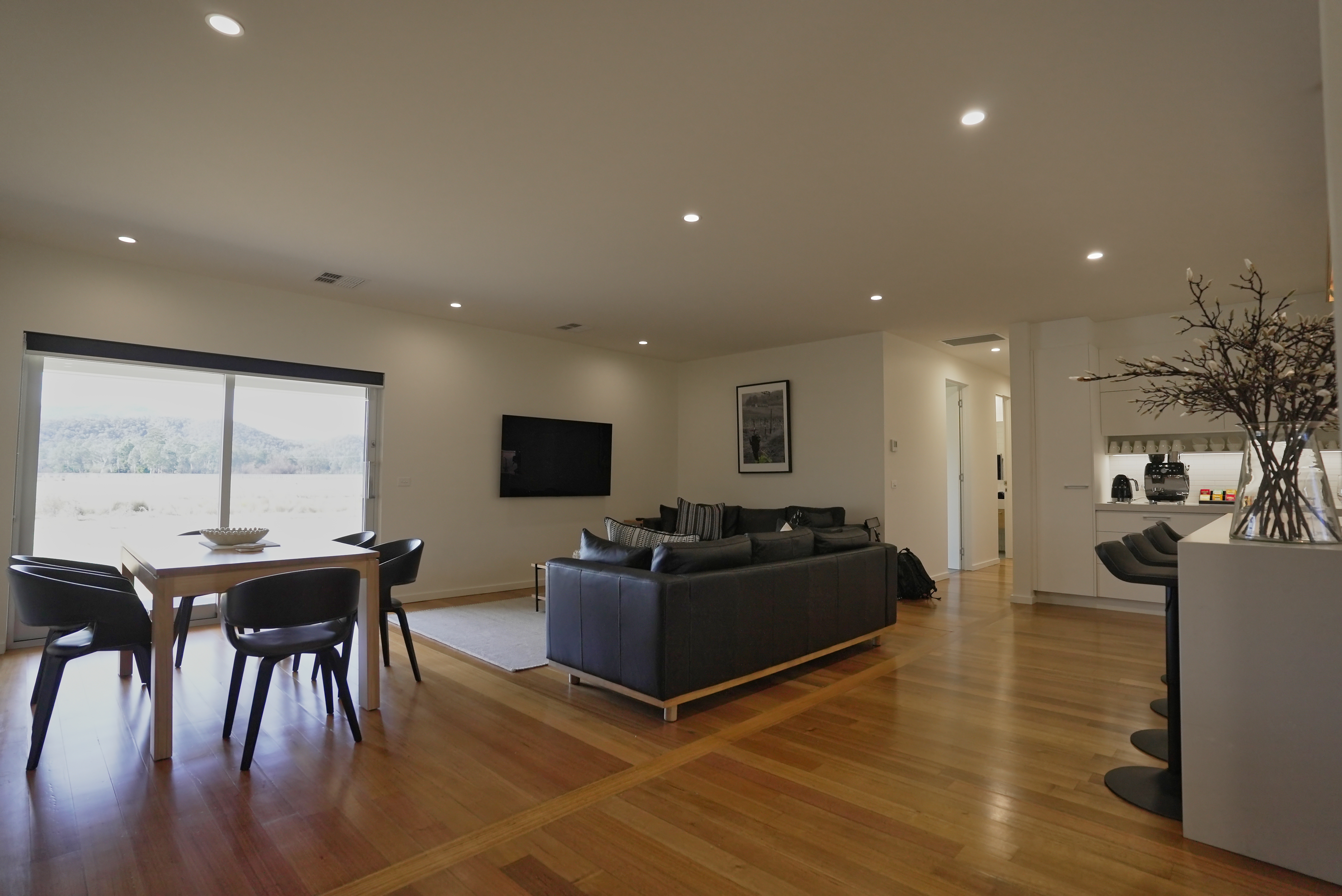 Every window offers stunning views of the King River flats, regional vineyards, the magnificent Black Ranges or Mount Cobbler, providing a picturesque backdrop for your stay. There’s also an additional family lounge area to catch some quiet downtime.
